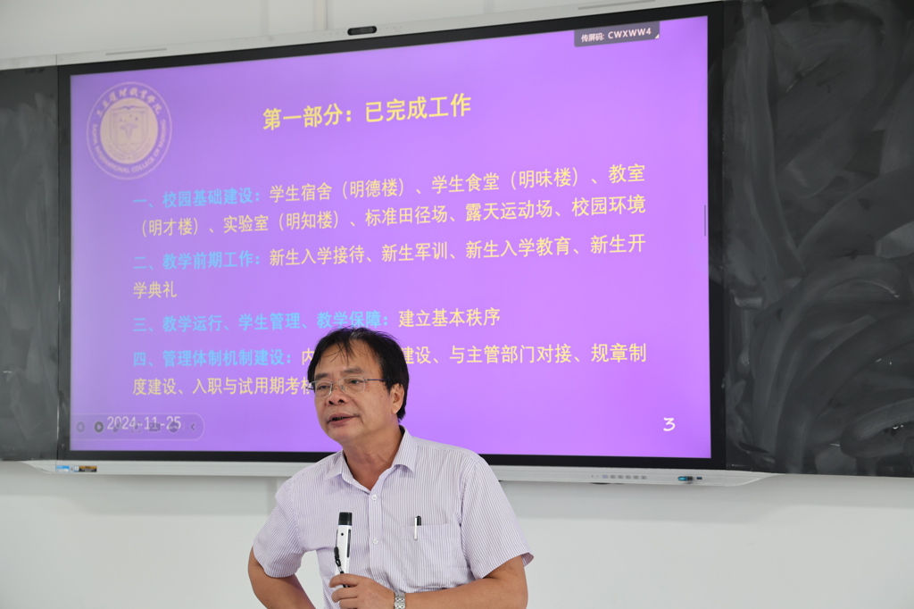 11 月 25 日下午,新葡的京集团8814vip 2024 年第二次全体教职员工会议在明才楼201举行。学院领导班子成员及全体教职员工参加会议。