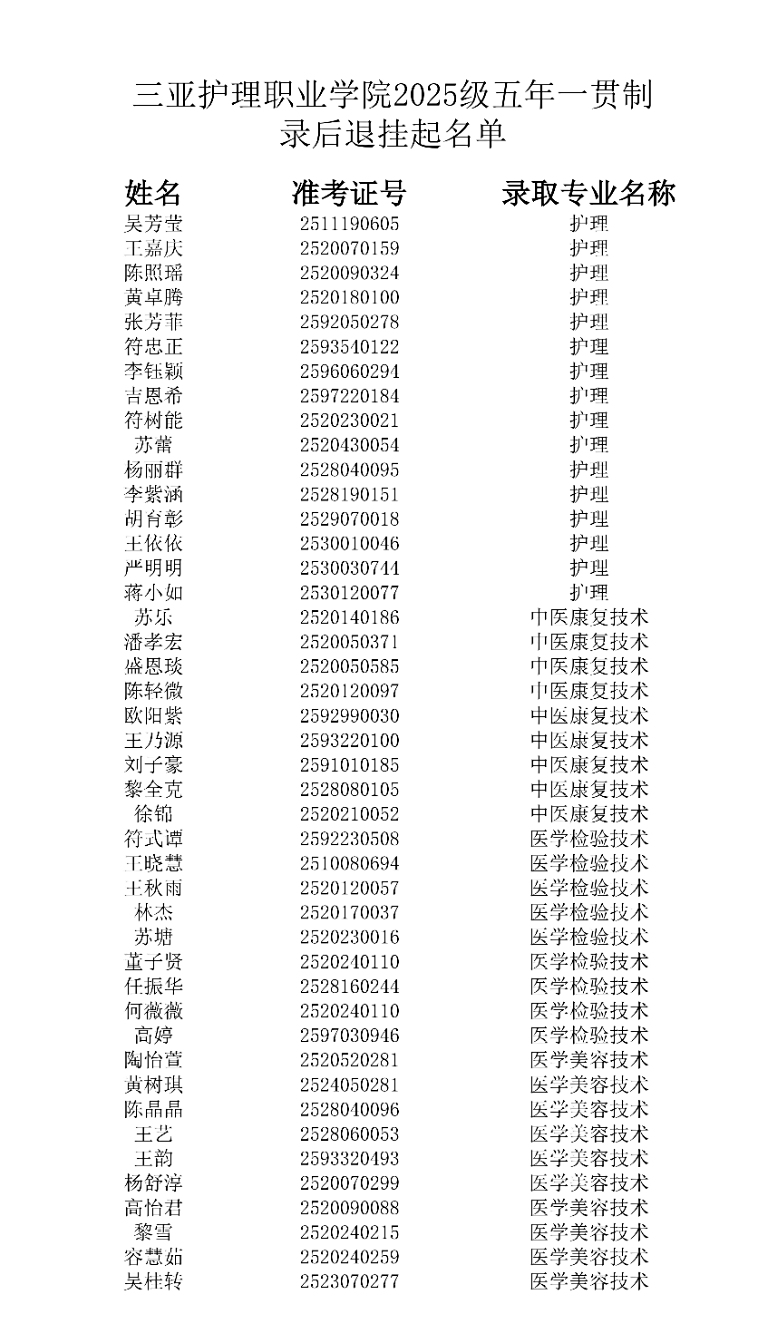 依海南省考试局要求,现将新葡的京集团8814vip2025级五年一贯制录后退挂起名单公示,具体如下: