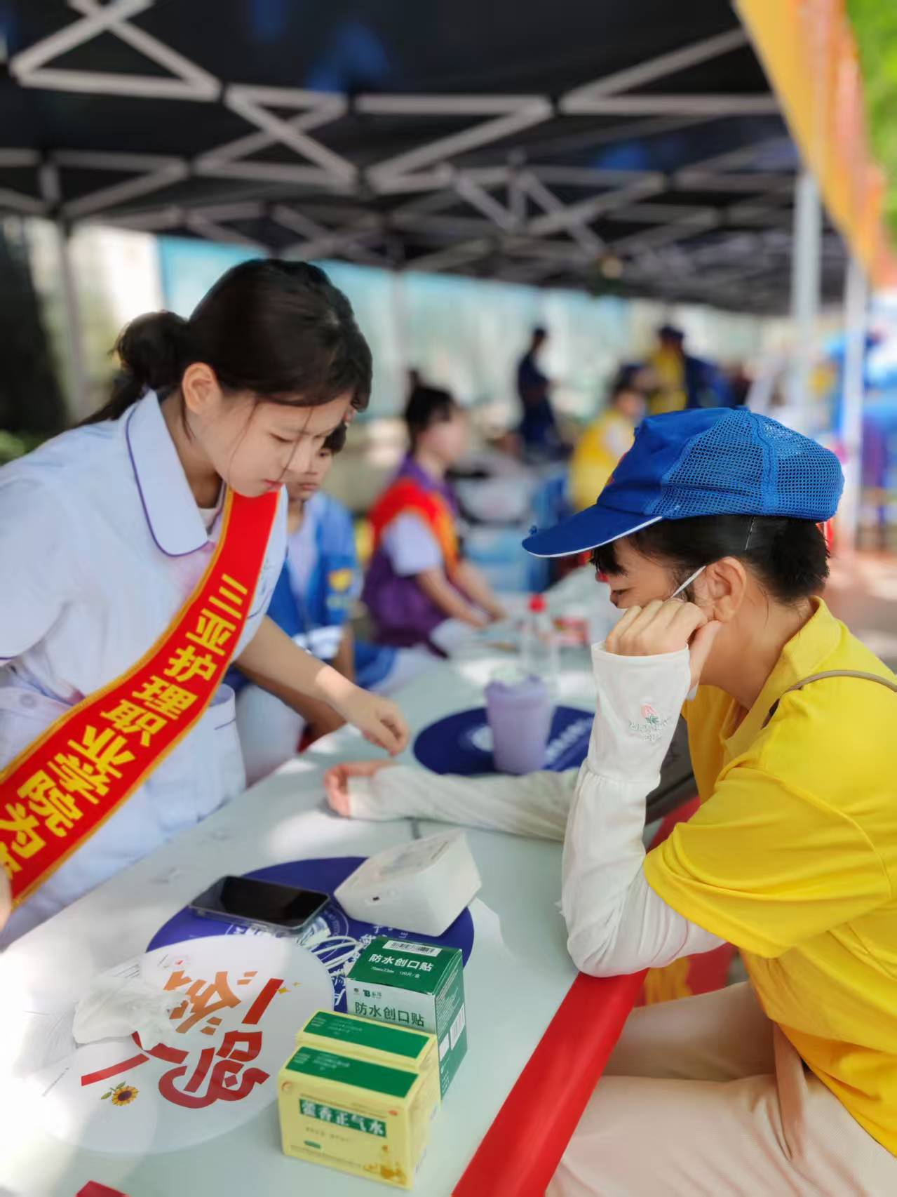 作为护理专业院校的师生,志愿者们特别关注考生及家长的身体状况,配备了常用药品,并时刻准备运用所学知识应对可能出现的突发健康问题。这份专业的“后备力量”,为现场增添了一份无形的安心感。