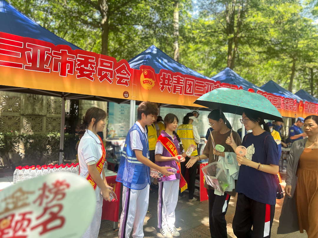 每天早上七点,考点周边已活跃着学院志愿者们忙碌的身影,他们身着醒目的志愿者服装,备好充足的矿泉水、应急文具、防暑降温药品等物资,奔赴各自岗位。一个微笑、一句“加油”、一瓶及时递上的矿泉水,都在传递着真诚的鼓励与关怀。